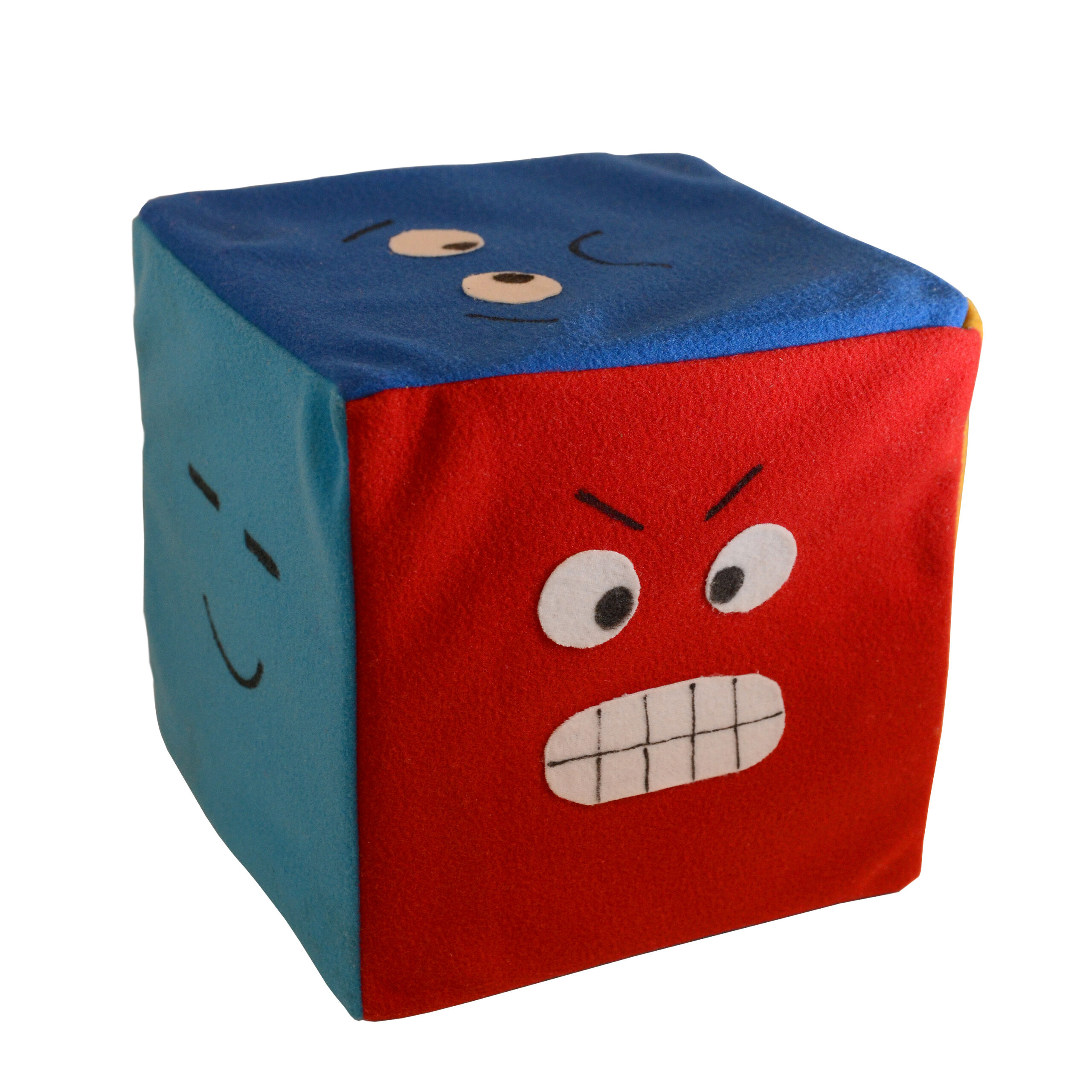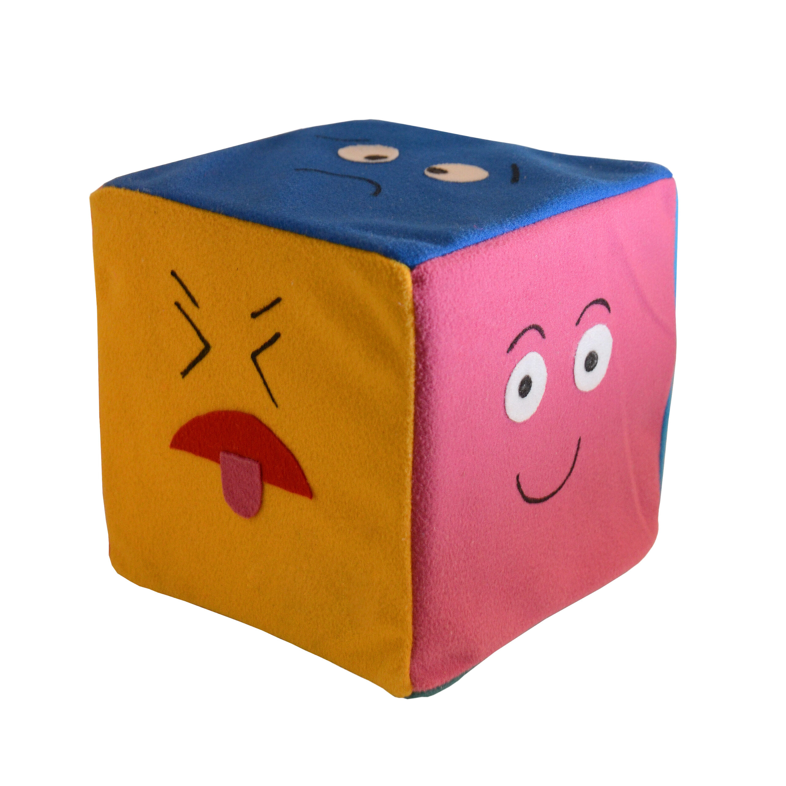 Dado fabricado con tela de polyester, relleno de algodón siliconizado anti-alérgico, su rostro está pintado a mano. Herramienta ideal para ser usada para explorar sentimientos de manera entretenida y novedosa, y fomentar la comunicación emocional. Ideal para terapeutas infantiles y adultos que trabajan con niños.